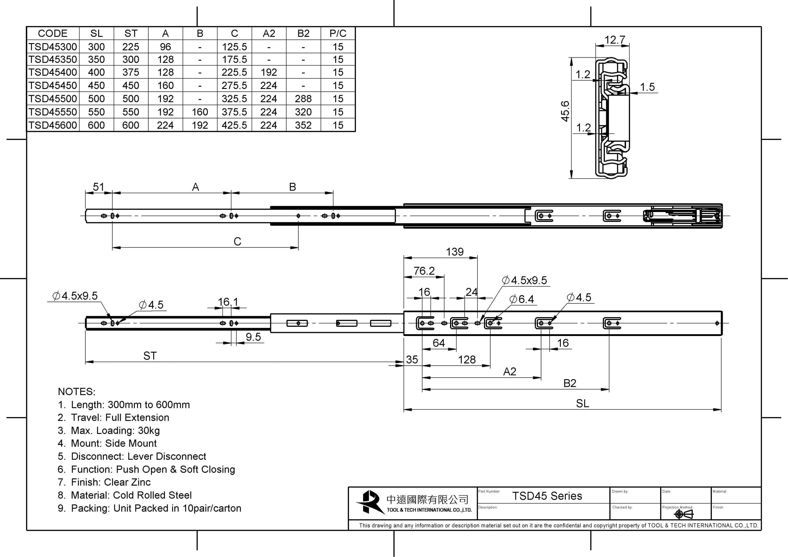 | TSD45300 | 300 | 225 | 96 | – | 125.5 | – | – | 15 |